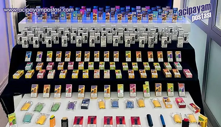 Baskında ele geçirilen 310 adet elektronik sigara, 14 adet elektronik sigara apartı ve likiti, 12 adet ilaç ve 3 adet cep telefonu bulundu. Yakalan kişiler hakkında “5607 sayılı Kaçakçılıkla Mücadele Kanununa Muhalefet” adli işlem başlatıldı.