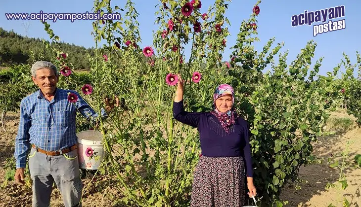 Denizli’de yol kenarlarında ve tarlalarda kendiliğinden yetişen ve halk arasında deve gülü çiçeği olarak bilinen hatmi çiçeğinin, soğuk algınlığı, grip gibi pek çok hastalığa iyi geldiği belirtiliyor. Kış aylarında vatandaşların rağbet ettiği şifalı bir bitki olan hatmi çiçeği, bazı yörelerde, “Devegülü”, “Silindir Çiçeği”, “Gülhatmi” olarak da biliniyor. Beyaz, pembe, mor, sarı, kırmızı çiçekleri çizgili ya da lekeli olabilir. Güneşli, rüzgâr almayan yerlerde iyi gelişir. Honaz ilçesine bağlı Kaklık Mahallesi’nde, ayva bahçesinin içine ikinci ürün olarak diktiği hatmi çiçeklerinin hasadına devam eden Muzaffer Gök, “Mart ayında hatmi çiçeği tohumunu ektik, Nisan ayında üç dönümlük ayva bahçemizin içine ikinci ürün olarak hatmi çiçeklerinin fidanlarını diktik. Can suyu veriyoruz, Haziran ayında ilk hasada başladık. Gölge de kurutuyoruz, burası 3 dekar, aşağı yukarı 500 kilo kuru hatmi çiçeği hasadı yapmayı hedefliyorum. Türkiye’nin birçok ilindeki aktarlara buradan satış yapıyorum. Kilosu 90 TL’ den gönderiyoruz. Günlük sabah akşam toplanması gerekiyor. Aynı darı patlağı gibi patlıyor. Dağa bayıra gitmiyoruz, kendimiz yetiştiriyoruz ve organik olarak yetiştiriyoruz. Günlük toplanması gerekir. Toplamazsan dökülür, havalar iyi olursa verim oluyor. Ama havalar kötü olursa verim düşüyor. Yaz aylarında güneşi ne kadar çok görürse o kadar çok açıyor. Havalar soğumaya başlayana kadar hasat devam eder. Yağmur çok olursa boyu çok uzar. Sularsan daha güzel verim alınıyor” dedi