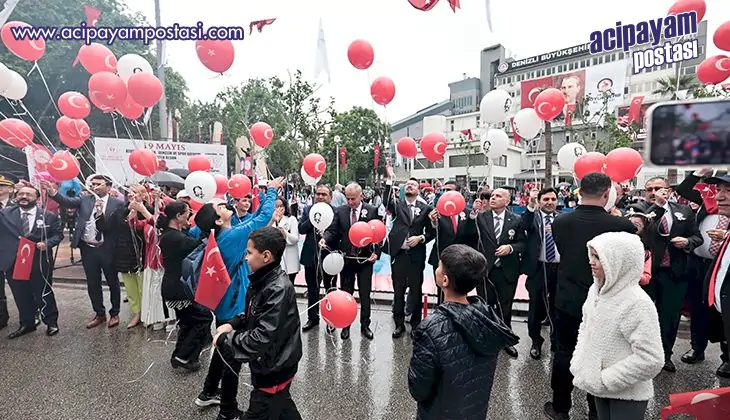 Denizli, yağmura rağmen 19 Mayıs Atatürk’ü Anma Gençlik ve Spor Bayramı’nı coşkuyla kutladı. Kutlama programı Valilik Atatürk Anıtına çelenk sunumu ile başladı. Ardından bando eşliğinde protokol, sporcular ve vatandaşların katılımıyla kortej yürüyüşü gerçekleşti. 15 Temmuz Şehitler Meydanında ki kutlamalarda yağmura rağmen 104. yıl coşkusu bir an olsun eksilmedi.