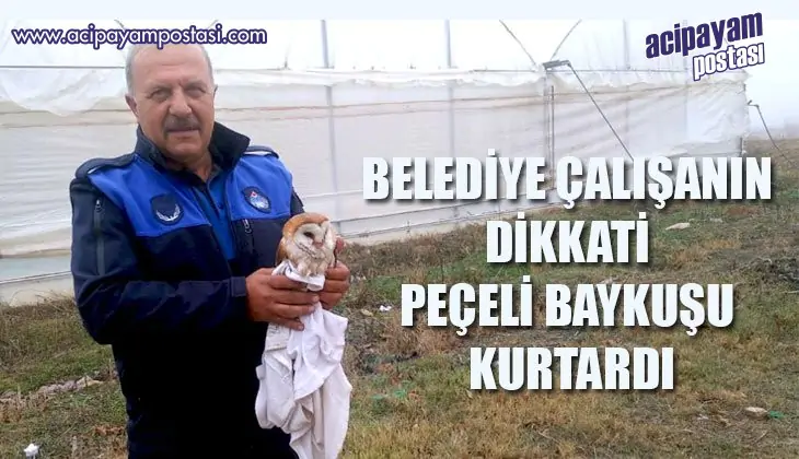 Çal Belediyesinin girişimci çiftçilere örnek olması için isabey mahallesi yakınlarında çalıştırdığı seranın 100 ton kapasiteli sulama havuzuna bugün öğle saatlerinde peçeli baykuş düştü. Nesli tükenmekte olan peçeli baykuşu serada çalışmakta olan Çal Belediyesi çalışanı Ziya Çakır fark etti. Çakır, boğulmak üzere olan peçeli baykuşu sudan çıkardı. Kapalı odaya götürülen baykuş önce havlu ile kurtuldu, ardından sobanın karşısında ısıtıldı. Kendine gelen baykuş Belediye çalışanları tarafından yeniden yaşam alanına bırakıldı.